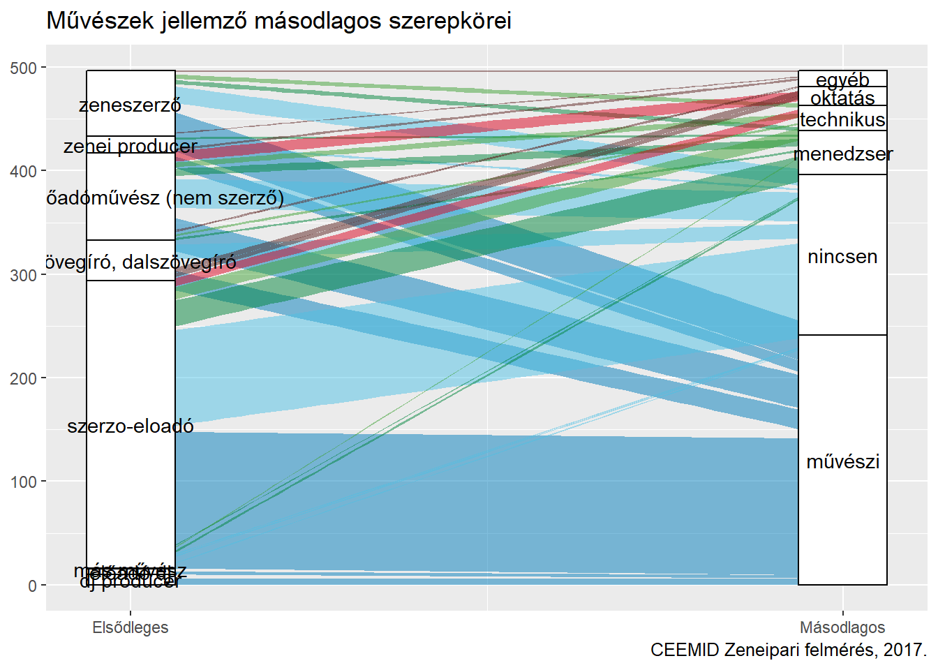 A művészek jelentős része szerző-előadó, mivel a könnyűzenében hosszú ideje az jellemző, hogy a műveket a szerzők a saját hangjukon szólaltatják meg. A kizárólag zenei előadóművészi kevesebben vannak a szerző-előadóknál. Általában elmondható, hogy az elsődlegesen művészi feladatkörben tevékenykedő zenészek, szerzők, szövegírók rendelkeznek valamilyen másodlagos, a zenéhez kötődő művészi, technikusi, menedzseri, oktatói vagy egyéb szerepkörrel is.