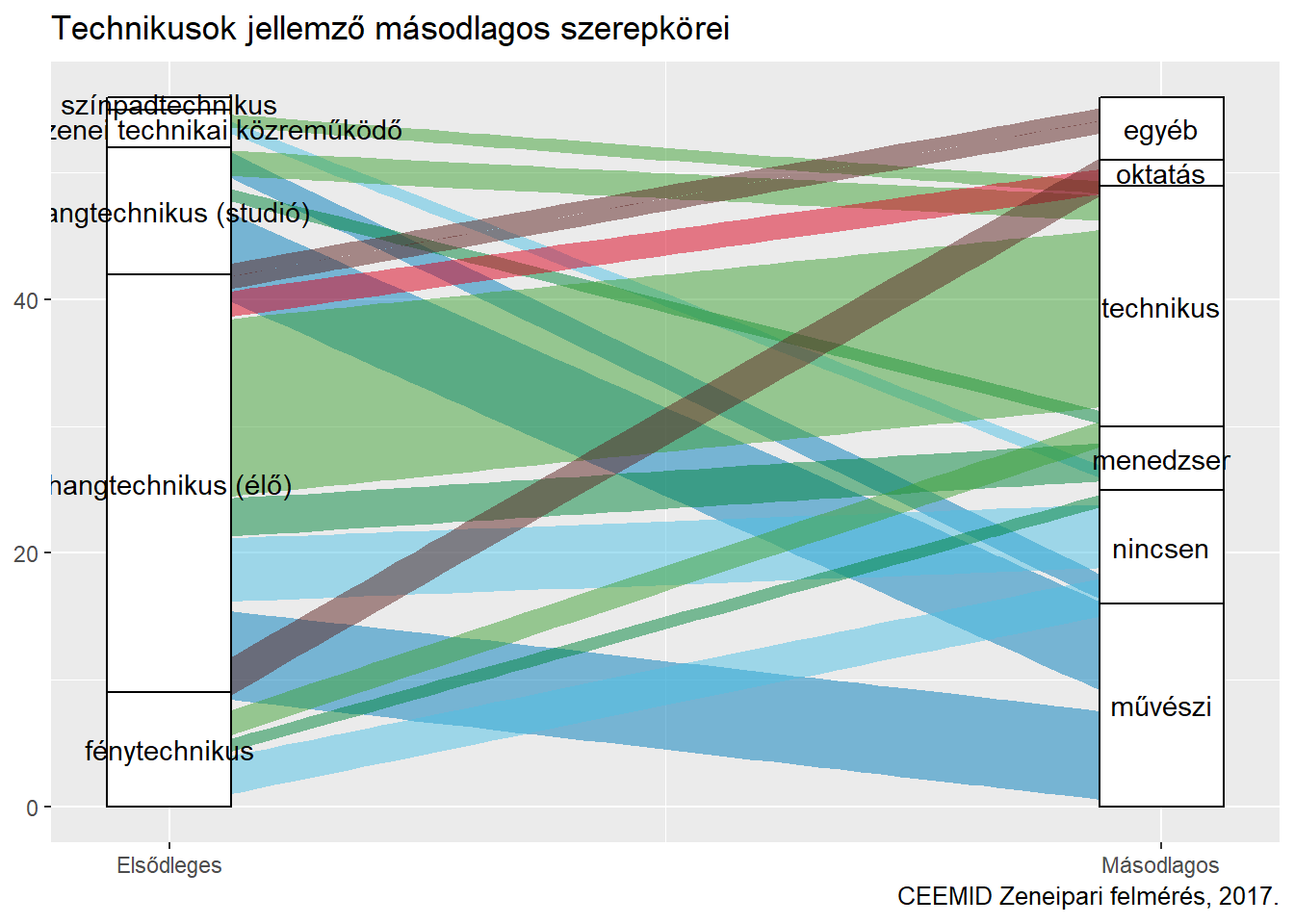 A zeneipar nagyon fontos szereplői a hang-, fény-, látvány- és színpadtechnikusok, illetve a technikai stáb további tagjai, például a zenekari szállítók. Rájuk még a művészeknél is nagyobb mértékben jellemző, hogy több feladatkört látnak el a magyar zenei életben. A legtöbben közülük kétféle technikusi szerepkörben is keresnek pénzt, de többen művészi vagy menedzseri feladatokat is ellátnak.